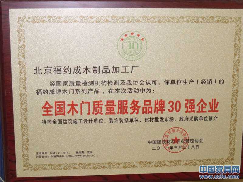 全國木門質(zhì)量服務(wù)品牌30強(qiáng)企業(yè)