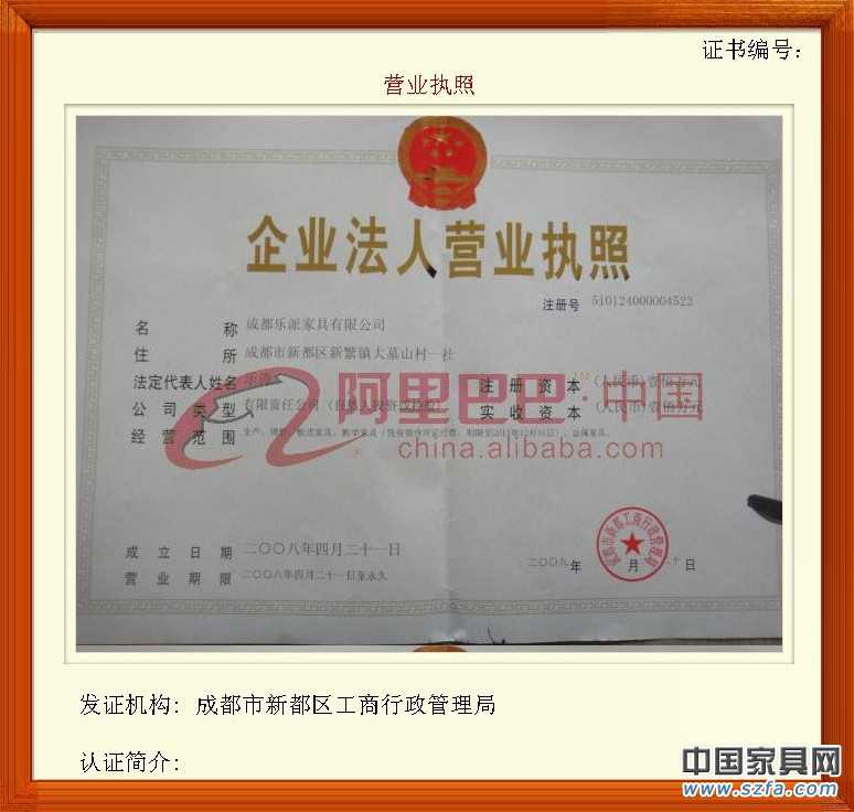| 發(fā)證機(jī)構(gòu): | 成都市新都區(qū)工商局 | 發(fā)證時(shí)間 : | 2008-04-21 |