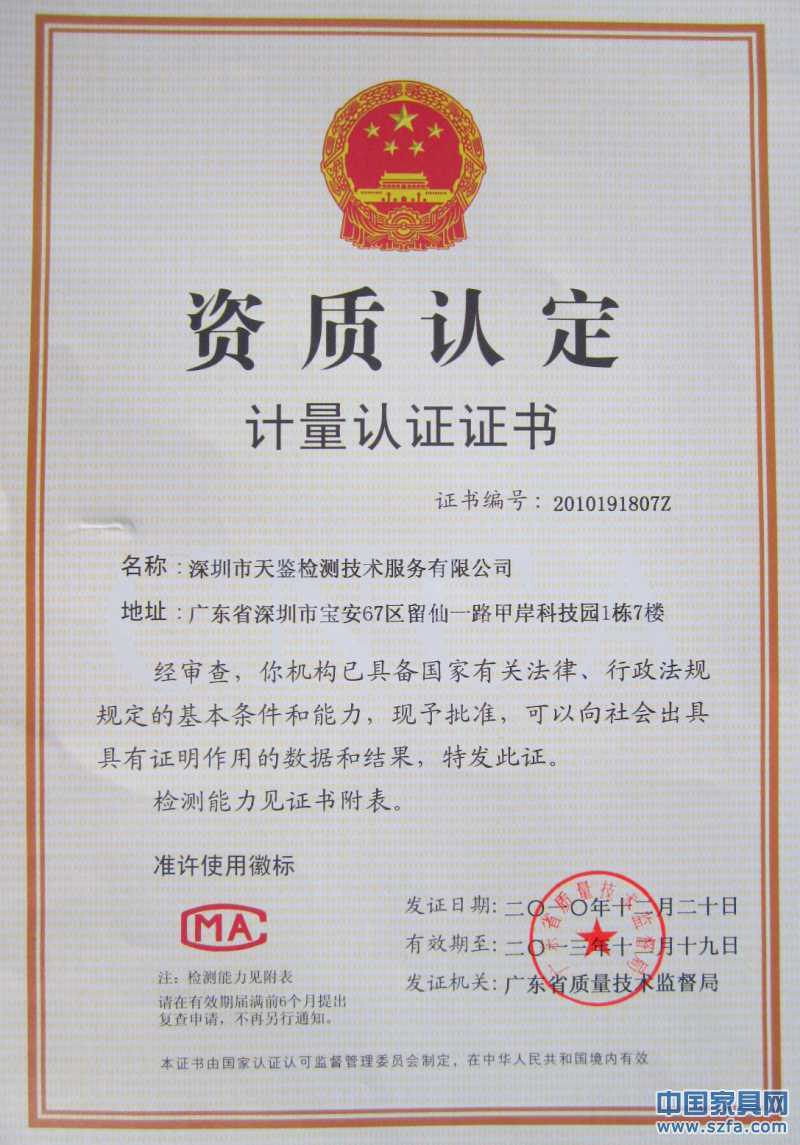 | 發(fā)證機(jī)構(gòu): | 廣東省質(zhì)量技術(shù)監(jiān)督局 | 發(fā)證時(shí)間 : | 2010-12-20 |