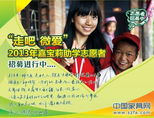 據(jù)悉,“走吧 微愛(ài)”招募活動(dòng)在北影的招募結(jié)束后,下一站 “走吧 微愛(ài)”2013嘉寶莉助學(xué)志愿者招募宣講會(huì)-廣州站,將于4月11日19:00在暨南大學(xué)教學(xué)樓A209舉行,有興趣的同學(xué)可以留意 @嘉寶莉助學(xué)基金會(huì) 官方微博的最新消息。