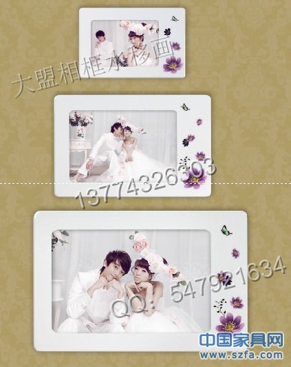 大盟專利水移畫—相框水移畫,相框水轉(zhuǎn)印貼紙,相框水轉(zhuǎn)印加工可用于各影樓ABS亞克力相框,兒童影樓相框、韓式相框、婚紗影樓相框、實(shí)木相框,玻璃烤漆相框等;可分為:兒童相框卡通貼花、相框手會(huì)花;相框歐式花紋等。 相框水移畫,相框水轉(zhuǎn)印貼紙,相框水轉(zhuǎn)印加工主要利用水的活化性一次性轉(zhuǎn)印的相框上,無需機(jī)器手工操作簡單方便,轉(zhuǎn)印后的畫看起來就象直接印在上面一樣無膠痕顏色鮮艷,圖案精細(xì)!跟承印物似乎融為一體,摸上去平坦光滑,沒有凹凸感。適用于任何平整光滑的平面或曲面。多種圖案可以定做!