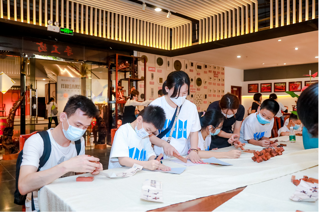 10余組親子家庭參加市民巡禮活動,近距離了解紅木的發(fā)展歷史、種類和分布、挑選辨別及紅木家具制作工藝等消費知識。大家還在專業(yè)老師的指導(dǎo)下動手制作了榫卯結(jié)構(gòu)的小家具,體驗傳統(tǒng)榫卯工藝,感受紅木文化,感悟工匠精神。