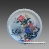 景德鎮(zhèn)陶瓷廠家生產(chǎn)供應(yīng)陶瓷大瓷盤,開業(yè)禮品陶瓷大瓷盤,喬遷禮品陶瓷大瓷盤,商務(wù)禮品陶瓷大瓷盤,手繪青花陶瓷大瓷盤,手繪粉彩陶瓷大瓷盤,裝飾品陶瓷大瓷盤,景德鎮(zhèn)高檔陶瓷大瓷盤、賞盤、看盤、擺盤、掛盤。景德鎮(zhèn)陶瓷瓷廠生產(chǎn)的陶瓷大瓷盤適用于商務(wù)辦公場合、酒店大堂裝飾、酒店餐廳巨型器皿、大堂隔間屏風(fēng)、工地竣工紀(jì)念、名人肖像館紀(jì)念等。景德鎮(zhèn)大瓷盤常規(guī)規(guī)格在1米-1.5米,畫面有蟲魚鳥獸,梅蘭竹菊,蓮花,植物,樓閣,牡丹,龍紋,庭院國畫等。由于大瓷盤直徑太大,通過模具制作是根本不可行的。因此制作這款陶瓷大瓷盤從泥胚的制作開始都是人工手工拉坯、修坯,待泥坯干燥后,用特殊的陶瓷顏料將精選的畫面手繪到瓷盤上面。大瓷盤的燒制是經(jīng)過1300攝制度的高溫?zé)贫?,這一特性是的我們的陶瓷大瓷盤畫面可永久保存、永不退染色。