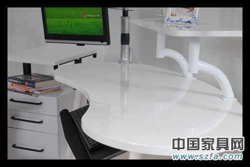 - 理念:人體工學(xué)設(shè)計,巴洛克風(fēng)格,簡約時尚,盡顯高雅品質(zhì),環(huán)形桌面設(shè)計,突出舒適度。吊掛式計算機鍵盤面板,節(jié)省空間,并能輕松調(diào)整舒適的上下高度、左右角度,讓身體、手腕、手臂、肩膀呈現(xiàn)自然放松的工作姿勢。桌下無障礙空間,簡約時尚,并能方便殘障人士使用。上層活動輔助桌板可提供額外的置物空間