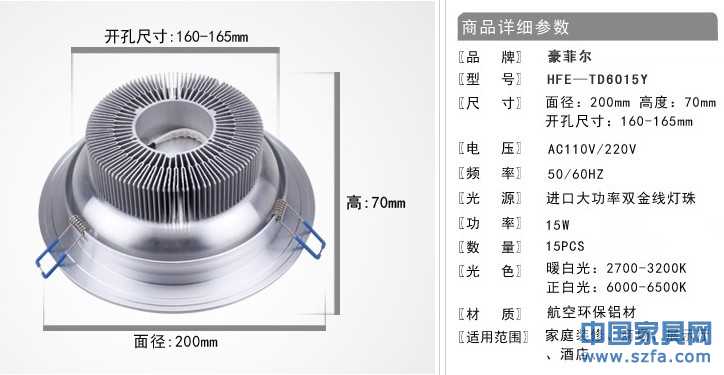 | 顯色指數(shù):>80 | LED顆數(shù):15、18、21、 | 型號(hào):HFE—TD0Y |