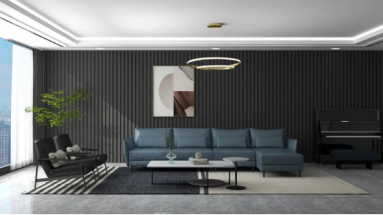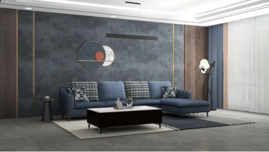 CBD家居·雪豹 | X015-1沙發(fā),灰藍色與深灰色相輔相成,舒緩柔和成為空間的基調(diào),極簡的形制下蘊藏著率然自若的生活態(tài)度,更好地彰顯居主生活品味。