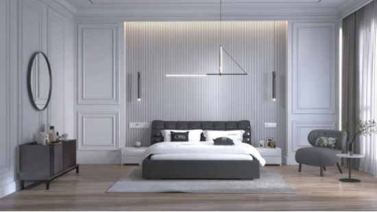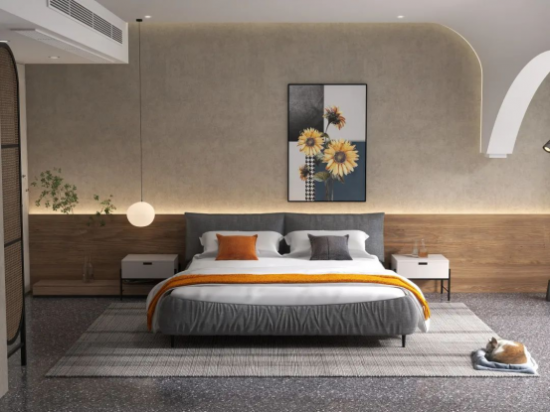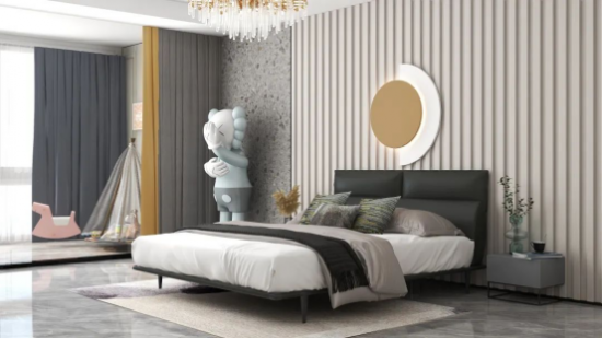 高級灰優(yōu)雅凝練,演繹CBD家居·白金 | BS082-1軟床的中性之美,穩(wěn)靜是底色,暖燈光線下自有溫婉意蘊,獨立靠包簡約個性,床尾褶皺設計彌足藝術感,讓睡眠環(huán)境更加優(yōu)質(zhì)。