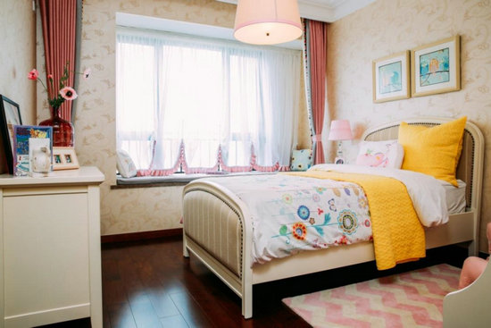 為契合女孩氣質,兒童房選擇純白底色,加以柔嫩粉與加州黃的床品、飾品,令小空間明亮且開闊,為孩子打造繽紛成長世界。