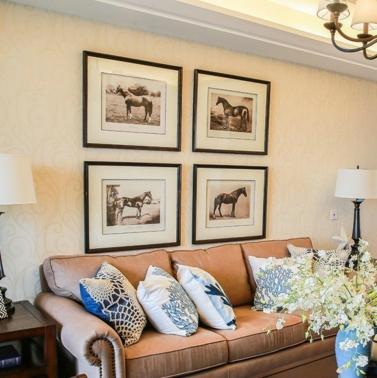 墻畫起著平衡空間、點亮裝飾效果的重要作用,在中小戶型空間中更能有效拉伸空間縱深。設計師選擇畫框簡約、畫面與整體風格相呼應的裝飾畫,并根據(jù)空間布局,選擇正確的陳列方式,助力中小戶型美式休閑格調。
