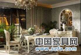 貴族風(fēng)格的餐桌椅組合,實木材質(zhì)加上無處不在的細節(jié),無論從哪一個角度看,都非常的大氣奢華。簡約法式家具帶來的奢華感,極富親和力,更容易打動人的內(nèi)心,型、酷、紳士是人們看到這個空間后的第一感覺。其超大尺度更適用于大型公寓或別墅空間。暗褐色的墻面裝飾與白色吊頂整個空間突出低調(diào)的奢華感。皮質(zhì)、布藝的雕花餐椅圍合著精美別致的餐桌,與桌面的飾品完美融合。方形的餐桌,靠墻的酒柜,恰到好處的綠植,特別是圓頂?shù)穆涞卮埃b飾了空間效果,彰顯了主人的品味,別致的法式水晶吊燈更強調(diào)了空間的主題。
