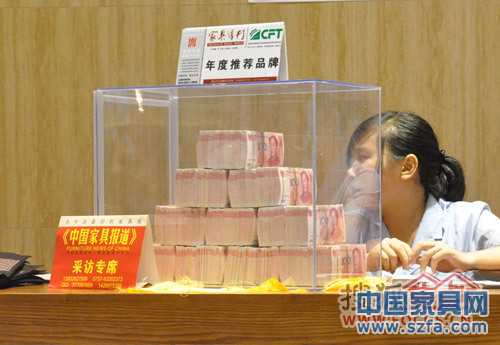 看一眼,一百萬,有木有?!有木有?!是在赤裸裸,當(dāng)然吸引眼球是有的。美幻美綸家具在今年展會中重推旗下兩個子品牌“醉憶長安”和“言木”,不僅在展位前臺壘起了“百萬錢墻”,還打出“看一眼 100萬”的廣告牌,更是列出了年度銷售季軍保守毛利潤50%的銷售業(yè)績,讓人難免咋舌!家具目前還真的有如此暴利?
