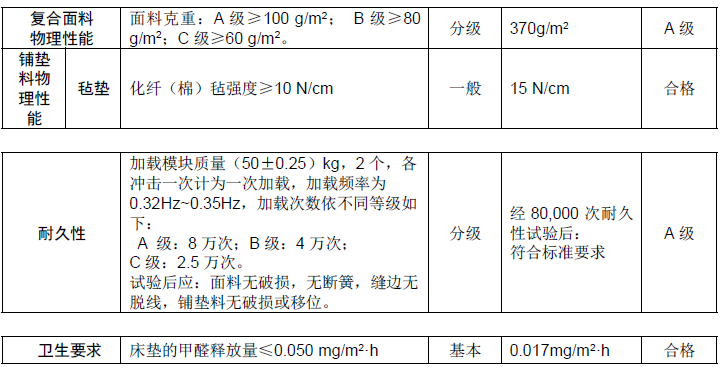 ·檢測(cè)標(biāo)準(zhǔn)號(hào):QB 1952.2-2004《軟體家具 彈簧軟床墊》