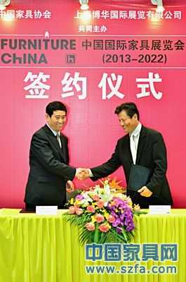 世界上最大的家具展覽會(huì)之一——中國(guó)國(guó)際家具展覽會(huì)(Furniture China)由全國(guó)性權(quán)威行業(yè)組織中國(guó)家具協(xié)會(huì)和中外合資專業(yè)展會(huì)機(jī)構(gòu)上海博華國(guó)際展覽有限公司共同主辦,2012年4月10日下午,雙方在上海新國(guó)際博覽中心簽署了未來(lái)十年(2013-2022)繼續(xù)共同主辦中國(guó)國(guó)際家具展覽會(huì)的合作協(xié)議,展會(huì)進(jìn)入下一個(gè)十年發(fā)展期。