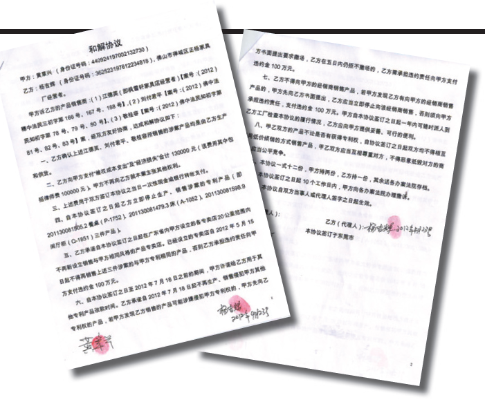 “在互聯(lián)網(wǎng)時(shí)代,專利競(jìng)爭(zhēng)會(huì)與網(wǎng)絡(luò)創(chuàng)新一樣出名。”英國(guó)《經(jīng)濟(jì)學(xué)人》雜志在今年年初曾作出這樣的斷語(yǔ)。家具專利戰(zhàn)爭(zhēng),方興未艾。2012年4月23日,廣東省佛山市中級(jí)人民法院就東莞市豪興家具有限公司董事長(zhǎng)黃章興——甲方訴楊吉輝(佛山市禪城區(qū)正揚(yáng)家具廠經(jīng)營(yíng)者)——乙方、乙方的產(chǎn)品銷售商江德英(即楓雪軒家具店經(jīng)營(yíng)者)、劉付君平、敬桂榮專利產(chǎn)品侵權(quán)案進(jìn)行庭外調(diào)解,引起業(yè)界廣泛的關(guān)注。