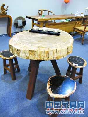 保留大自然進(jìn)化痕跡的樹化石,給人一種年代久遠(yuǎn)的歷史感。以直徑不同的樹干,原汁原味地制作成純天然的茶臺(tái)、椅凳,設(shè)計(jì)簡(jiǎn)單,卻保留古樸、原始的自然神韻。