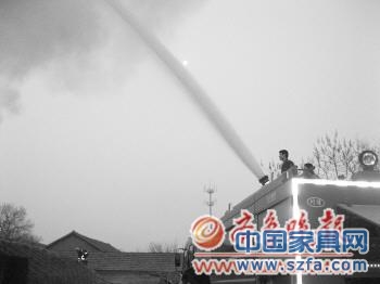 據(jù)消防人員描述,事發(fā)時,現(xiàn)場上空彌漫著大量濃煙,整個作坊大院里也被濃煙覆蓋,并不時有火焰從院墻里竄出,火勢最高時甚至能達到3—4米,并長時間處于猛烈燃燒階段。據(jù)悉,由于著火的主要是木頭等易燃品,再加上風力較大,大火借著大風迅速蔓延,嚴重危及毗鄰建筑和周圍人員的生命財產(chǎn)安全。為了控制火勢,消防官兵分為兩組,一組爬上周圍建筑,從上方射水滅火,另一組從正面射水滅火,兩路夾擊扼殺火勢。