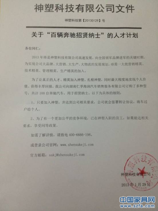 “我們斥資數(shù)千萬(wàn)的百輛奔馳計(jì)劃,的的確確是為了吸引人才。因?yàn)?2013 年是神塑向全國(guó)領(lǐng)軍品牌高速進(jìn)發(fā)的關(guān)鍵階段。當(dāng)然,跟我們的發(fā)展目標(biāo)相匹配的是‘神速’的人才跟進(jìn)。”神塑一位高層人士告訴記者。