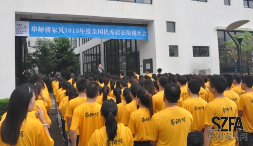 2013年8月17日東莞市華輝家具實(shí)業(yè)有限公司首度牽手中國(guó)家具產(chǎn)業(yè)教育學(xué)院在江西龍南“桃花島”進(jìn)行為期6天的華師傅家具2013年全國(guó)優(yōu)秀店長(zhǎng)培訓(xùn)大會(huì),近200多人全國(guó)各地的店長(zhǎng)和銷售精英匯聚龍南,這將是華師傅終端銷售伙伴們的一次突破成長(zhǎng)、提升業(yè)績(jī)的充實(shí)之旅,這也是中國(guó)家具產(chǎn)業(yè)教育學(xué)院與東莞家具企業(yè)合作定制培訓(xùn)的里程碑。