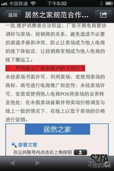 昨天,居然之家又通過官微發(fā)布《居然之家規(guī)范合作廠商開展電子商務(wù)》。