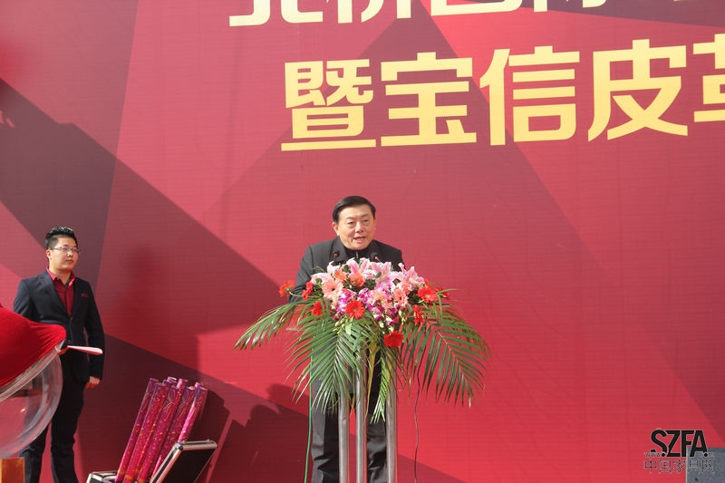 典禮開始,北橋家具材料城總經(jīng)理褚天貝首先致辭,對寶信皮革入駐材料城表示熱烈的歡迎,并對寶信以“誠信經(jīng)營、信譽為本”的理念大加贊賞,希望寶信皮革能發(fā)揮積極的領(lǐng)頭示范作用。