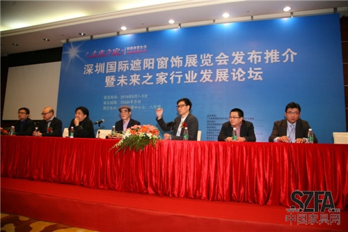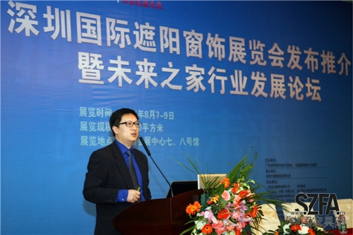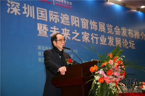 2014 年 3 月 8 日,由廣東省家用紡織品行業(yè)協(xié)會(huì)、全國(guó)遮陽窗飾產(chǎn)業(yè)聯(lián)盟主辦的深圳國(guó)際遮陽窗飾展覽會(huì)發(fā)布推介暨未來之家行業(yè)發(fā)展論壇在深圳會(huì)展中心隆重開幕。 全國(guó)工商聯(lián)紡織服裝業(yè)商會(huì)副會(huì)長(zhǎng)、中國(guó)家用紡織品行業(yè)協(xié)會(huì)副會(huì)長(zhǎng)、廣東省家用紡織品行業(yè)協(xié)會(huì)黃錦權(quán)會(huì)長(zhǎng),全國(guó)工商聯(lián)紡織服裝業(yè)商會(huì)布藝分會(huì)副會(huì)長(zhǎng)、廣東省家用紡織品行業(yè)協(xié)會(huì)常務(wù)副會(huì)長(zhǎng)蔡榮華、 黃小洪、 李植茂、梁洪輝、劉錦釗, 鄧源津、 陳溢銘、 黎建榮, 全國(guó)工商聯(lián)紡織服裝業(yè)商會(huì)副會(huì)長(zhǎng)李巍,上海市裝飾裝修行業(yè)協(xié)會(huì)副會(huì)長(zhǎng)、建筑遮陽專業(yè)委員會(huì)主任、 SORARA 晴天花園總經(jīng)理黃永, 中國(guó)建筑節(jié)能協(xié)會(huì)常務(wù)理事、上海市裝飾裝修行業(yè)協(xié)會(huì)副會(huì)長(zhǎng)、上海名成建筑遮陽節(jié)能技術(shù)股份有限公司殷文, 中國(guó)建筑節(jié)能協(xié)會(huì)常務(wù)委員、 英國(guó)朗絲集團(tuán)總裁、浙江朗德實(shí)業(yè)有限公司總經(jīng)理余建明, 寧波杜亞機(jī)電技術(shù)有限公司總經(jīng)理鮑永林,法國(guó)尚飛中國(guó)市場(chǎng)總監(jiān)劉繼武, 德錄峰(上海)節(jié)能設(shè)備有限公司總經(jīng)理李希雷先生,路川金域電子(上海 )有限公司全國(guó)銷售經(jīng)理胡斌,上海名成企業(yè)副總裁殷建生等全國(guó)遮陽窗飾產(chǎn)業(yè)聯(lián)盟領(lǐng)導(dǎo)、 企業(yè)代表, 全國(guó)軟裝布藝大型零售商代表, 深圳國(guó)際家紡展遮陽窗飾參展商,建筑、 酒店工程、 裝飾公司等相關(guān)行業(yè)嘉賓共同出席本次盛會(huì), 相互交流、 探討節(jié)能遮陽與家居智能化行業(yè)的發(fā)展模式與未來前景。