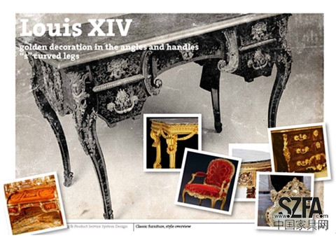 對(duì)于原型模仿而言,相對(duì)比較直接和直觀,無(wú)需贅述。但即便如此,也得緊緊抓住原型中的典型特征。如:路易十四式風(fēng)格家具中最突出的特征是在家具本體的角部與拉手部位有黃金裝飾,另一個(gè)重要的體態(tài)特征是桌椅類家具常用“S”型彎腿。如圖1所示。