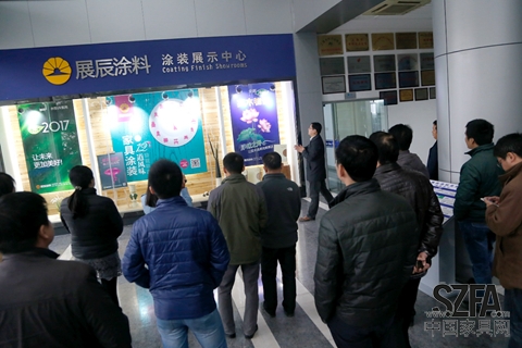 良辰又逢吉日,涂裝展示中心成立當(dāng)天,聯(lián)邦家居負(fù)責(zé)人蒞臨上海展辰,在家具漆營(yíng)銷(xiāo)服務(wù)中心周言明總經(jīng)理的帶領(lǐng)下,來(lái)到涂裝展示中心交流探討。展辰家具漆全新體系“家具涂裝的十二道風(fēng)味“的新穎形式,得到了聯(lián)邦家居的贊許和肯定。