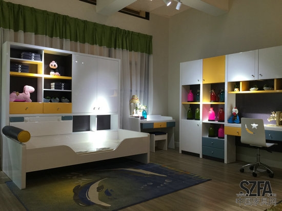 在此理念指導(dǎo)下,值得期待的是帝標(biāo)對(duì)板式家居的突破。在實(shí)木家具大行其道的趨勢(shì)下,如何結(jié)合四川作為板式家具生產(chǎn)集群的產(chǎn)業(yè)優(yōu)勢(shì),更迅捷的適應(yīng)迭代快速的大眾市場(chǎng)成為帝標(biāo)必須思考的問(wèn)題——針對(duì)此,“混搭”成為解決方案之關(guān)鍵詞。跳出板式家具的傳統(tǒng)模式,通過(guò)高矮、顏色、材質(zhì)和表達(dá)方式的”混搭“,形成不同風(fēng)格的標(biāo)準(zhǔn)模板,給予消費(fèi)者更為開(kāi)發(fā)無(wú)限的選擇空間。從展會(huì)現(xiàn)場(chǎng)來(lái)看,這種混搭,的確已經(jīng)顛覆傳統(tǒng)家具搭配,解決了過(guò)去單一色彩、符號(hào)裝飾下的沉悶感,因而極具設(shè)計(jì)沖擊力。