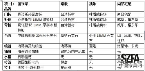 櫥柜市場(chǎng)幾大主流品牌配置橫向圖