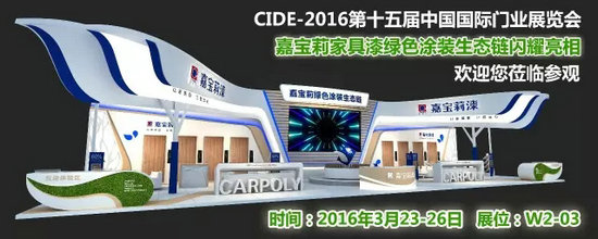 2016年3月23日-26日,嘉寶莉集團(tuán)將攜綠色涂裝生態(tài)鏈?zhǔn)⒋罅料嗟谑鍖弥袊鴩H門業(yè)展覽會(huì)。屆時(shí),我們將于北京中國國際展覽中心新館(北京市順義區(qū)天竺裕翔路88號(hào))W2館03展位恭迎您的蒞臨!