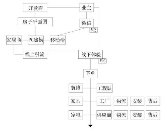 這個(gè)新的商業(yè)模式,使開(kāi)發(fā)商、業(yè)主和家居商連接起來(lái),客戶(hù)是精準(zhǔn)的,線(xiàn)上就不那么重要了,只是手段之一,主要是通過(guò)開(kāi)發(fā)商,然后進(jìn)入移動(dòng)端,然后線(xiàn)下體驗(yàn)下單,這之中還利用VR工具,使業(yè)主覺(jué)得好像身臨其境,所見(jiàn)即所得,確定了自己所要的裝修、家具、家紡……