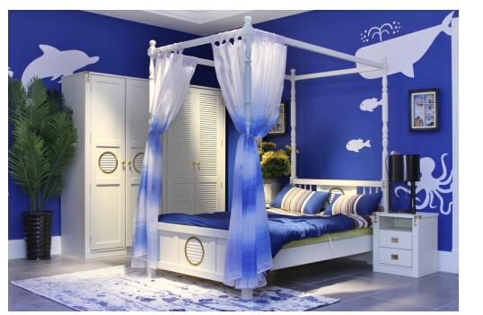 孩子對于未知擁有無窮的好奇心,希望像著童話里的主人公一樣,展開一場冒險。百強哈利木屋“航海系列”整體風(fēng)格由海洋、航行等元素組成——隨風(fēng)搖曳的巨大船帆、主管航向的木質(zhì)船舵、蔚藍的大海、復(fù)古的船緣、明媚的陽光、銹色的船錨……在色彩上選擇淺色調(diào),藍白色令空間夢幻感十足。其中兒童床設(shè)計成了帆船造型,床頭是“帆船”的船舵,到了夜晚,“小船長”能夠在酣夢中乘著他的冒險號航行世界。