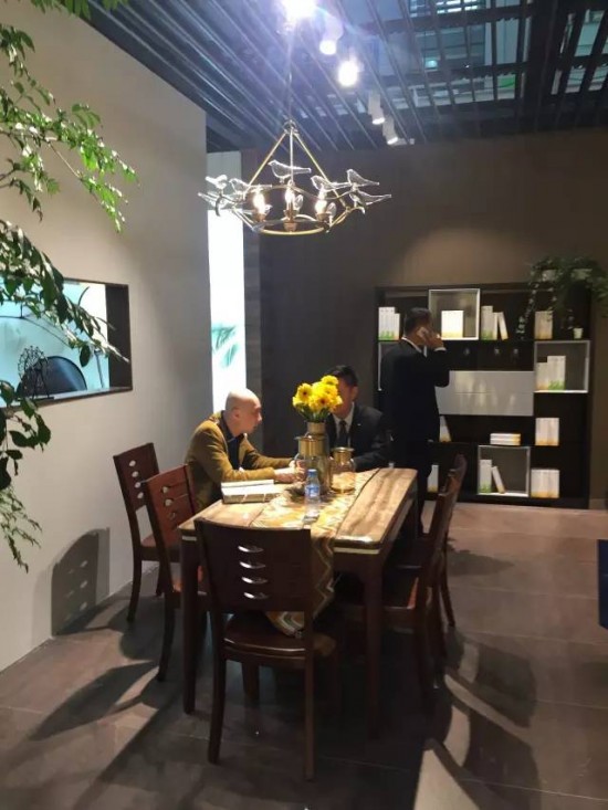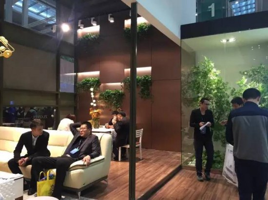 左右國際產(chǎn)品融入了現(xiàn)代意式、北歐等設(shè)計元素,風格現(xiàn)代時尚;圍繞左右國際的產(chǎn)品特點,展位整體外觀形象造型簡約,以白色為基調(diào),在琴鍵式陣列排列的格柵間,輔以藤蔓植物形式表現(xiàn),使內(nèi)部空間若隱若現(xiàn);空間布局以回廊曲徑式的動線分割空間,一步一景、隔而不斷;通過深褐色的木制隔墻,輔以橙色的玻璃隔斷和竹景,在大面積模擬自然光燈箱的背景襯托下,結(jié)合產(chǎn)品各系列的特點,組合成各單位展示空間,從而使空間與產(chǎn)品之間完美融合。