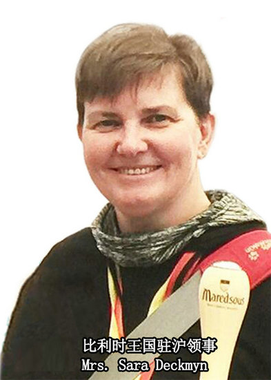 比利時駐滬商務(wù)領(lǐng)事Sara.Deckmyn女士(右二)攜領(lǐng)館人員與活動組委會成員合影留念