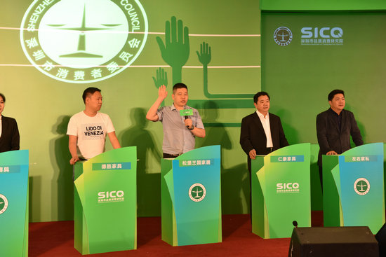 松堡王國(guó)作為九家受邀的家具企業(yè)之一,在大會(huì)上,姚總代表松堡王國(guó)向消費(fèi)者鄭重承諾:我是“好人舉手企業(yè)”,愿意接受消費(fèi)者挑戰(zhàn)。