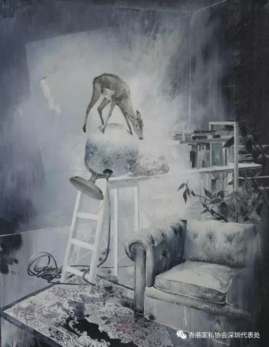 藝術(shù)家黃啟佑的作品運(yùn)用山、水、鶴等東方的元素,營造一種寧靜與仙氣。表現(xiàn)了在當(dāng)下嘈雜喧鬧的社會(huì),藝術(shù)家尋求內(nèi)心的一片凈土。這些藝術(shù)家對(duì)生活有著不同的理解與感悟,并將感悟表現(xiàn)于創(chuàng)作當(dāng)中。