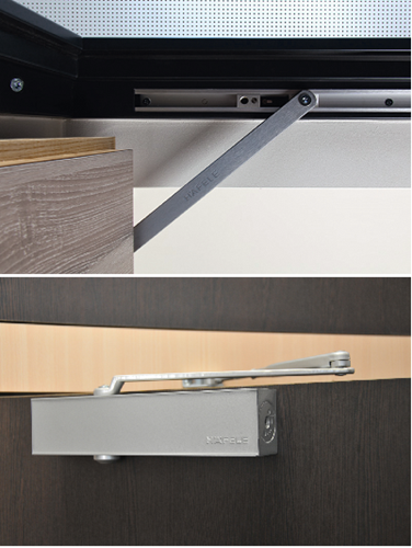 在一些場(chǎng)合,如果雙扇們不能很好的閉合,就會(huì)產(chǎn)生安全等一系列問(wèn)題,比如:雙扇防火門(mén)在火災(zāi)時(shí)由于人員進(jìn)出,如果無(wú)法保證按正確的順序關(guān)閉,就會(huì)產(chǎn)生門(mén)隙問(wèn)題,而無(wú)法達(dá)到防火隔煙的要求。因此,順位器多用于防火門(mén)上。海福樂(lè)G96GSR 系列平滑搖臂,內(nèi)置順序調(diào)節(jié)器,確保被動(dòng)門(mén)優(yōu)先于主動(dòng)門(mén)關(guān)閉。它是通過(guò)一個(gè)推桿夾緊系統(tǒng)的運(yùn)作來(lái)保證正確的閉門(mén)順序,由于系統(tǒng)獨(dú)立于閉門(mén)器的油壓系統(tǒng)工作,因此特別安全可靠。