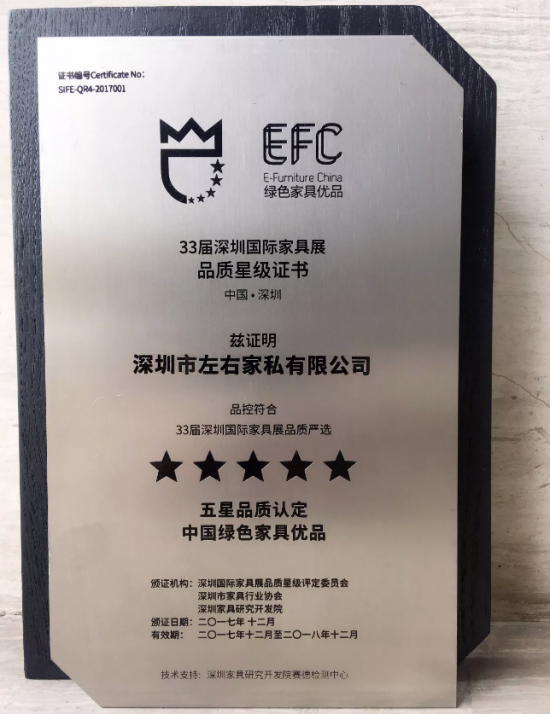 ▲左右沙發(fā)獲得“5星+綠色優(yōu)品”認定獎