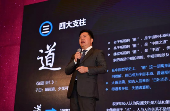▲黃華堃董事長發(fā)表以“深圳家具的自信”為主題的演講