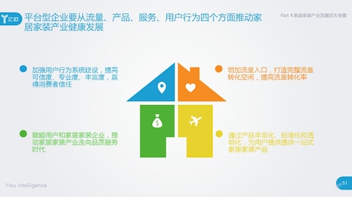 通過分析家居家裝產業(yè)現(xiàn)狀以及消費者特征,億歐智庫認為,未來幾年平臺型家居家裝企業(yè)更容易在競爭中勝出,但平臺型企業(yè)與垂直型企業(yè)不是競爭關系,而是魚水共存關系。家居家裝平臺型企業(yè),可以從流量、產品、服務、用戶行為四個方面推動家居家裝產業(yè)健康發(fā)展。