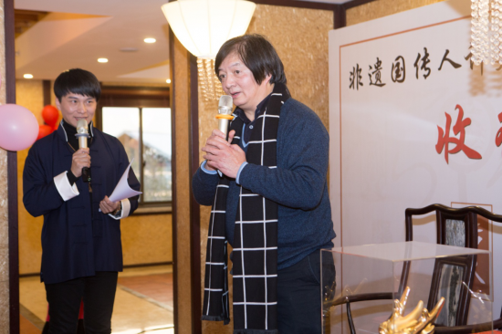 此次拜師儀式的主角之一徒弟羊洋滿懷深情地表達(dá)了對師傅的崇敬之情。她歷數(shù)了許建平大師為中國古典家具設(shè)計(jì)取得的一系列成就,強(qiáng)調(diào)了許大師在對長春偽滿皇宮復(fù)原項(xiàng)目被譽(yù)為“一個(gè)人恢復(fù)了一座皇宮”。她表示,姐妹倆能被許大師青眼相加即是緣分又是幸運(yùn),以后將在師傅的教導(dǎo)下,精研蘇作紅木制作技藝,領(lǐng)悟蘇作紅木內(nèi)涵,傳播蘇作紅木文化,擴(kuò)大蘇作紅木影響,并與上海視覺學(xué)院合作,請各位行業(yè)的大師能在高校培養(yǎng)非遺傳承人,讓民間力量成為系統(tǒng)的院校教育。把中國傳統(tǒng)的生活方式帶出國門,走向世界,以蘇州文人士大夫的生活方式呈現(xiàn),展現(xiàn)中國傳統(tǒng)文化以及民族文化復(fù)興驚艷一筆。