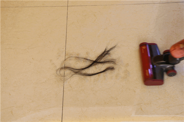 看看下面的清潔測(cè)試,不僅有寵物的毛發(fā)還有我自己的長(zhǎng)頭發(fā),刷頭走過(guò)毛發(fā)全部進(jìn)入到了塵筒里面,反過(guò)來(lái)看滾刷并未有任何的纏繞問(wèn)題。