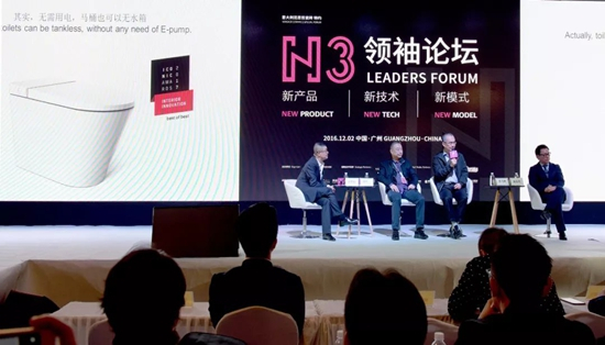 2016年11月27日,第十一屆廣州設(shè)計周,N3領(lǐng)袖論壇暨廣州設(shè)計周開幕大會的現(xiàn)場,AXENT恩仕無水箱坐便器 “設(shè)計概念” 視頻——《等待200年的馬桶革命》精彩獻(xiàn)映,引爆全場。