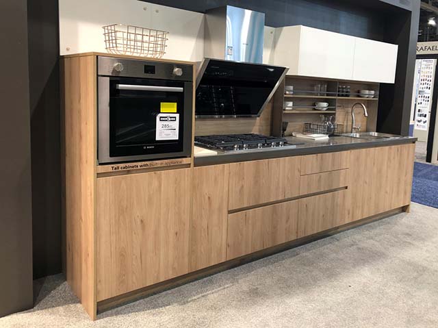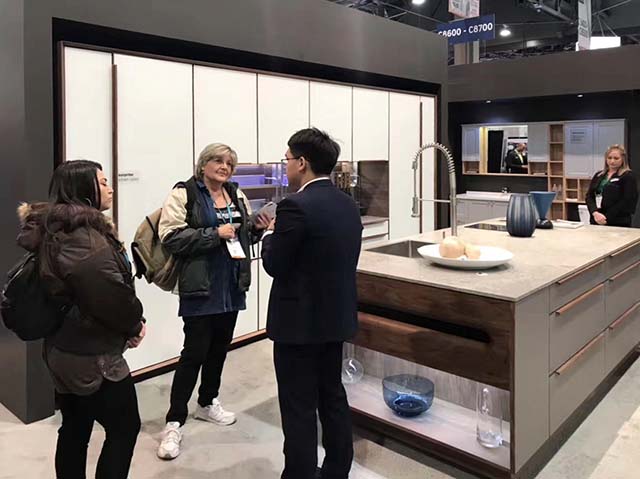 另外,志邦家居這次運往美國展會的實木邊框玻璃廚柜門實現(xiàn)了木與玻璃的完美結合,進一步的提高玻璃面板的安裝穩(wěn)定性,使其受力均勻;門型拼角圓滑無毛刺且不易開口,集安全、實用、美觀于一體。不僅其嚴謹?shù)墓に嚻焚|展示得到現(xiàn)場專業(yè)的觀眾的認可,尤其搭配的五金功能件及因此而形成的人性化功能變化更是引來眾多觀眾的駐足。