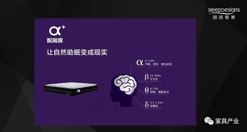 此外思麗德賽還全新推出了“黑科技”α智能版床墊,它能夠記錄助眠波段和睡眠情況,進(jìn)行智能分析學(xué)習(xí),釋放α腦電波,實現(xiàn)個性化助眠,引人進(jìn)入深睡眠。還能搭配手機APP感知人體睡眠情況,反饋每次睡眠數(shù)據(jù)。