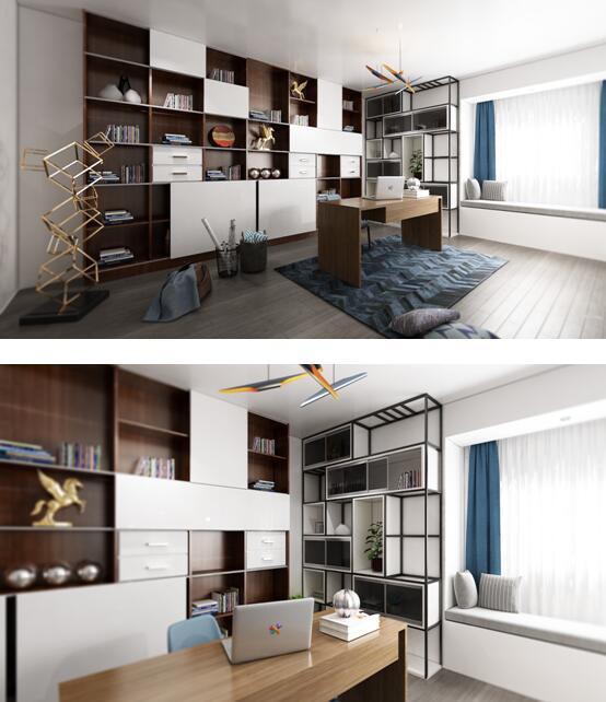 歐派克-全空間移動系統(tǒng)解決方案的書房空間解決對策,同樣通過對不同滑輪產(chǎn)品進(jìn)行整合,將移門應(yīng)用于書房,打造具有現(xiàn)代感與舒適度的家庭閱讀環(huán)境。