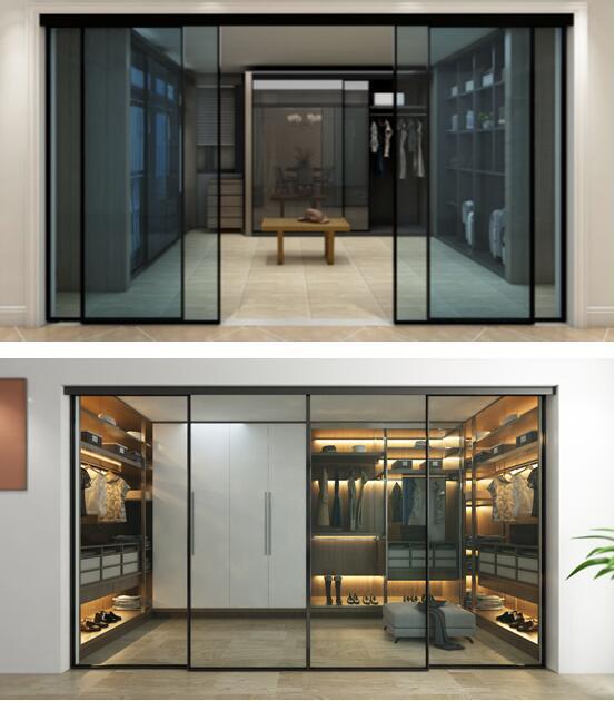 磁懸浮軌道和窄邊框玻璃門是衣帽間空間的點睛之筆,使用磁懸浮軌道安裝的玻璃移門無需碰觸,便可自動開啟;玻璃材質(zhì)讓衣帽間內(nèi)的物品美陳一目了然;邊框?qū)挾茸钚】蛇_(dá)750mm,順應(yīng)極簡主義風(fēng)格的同時,擴(kuò)大產(chǎn)品使用范圍。衣帽間內(nèi)部應(yīng)用了小面積的玻璃移門,提升衣帽間的品味感,順暢、靜音的滑動效果,讓推拉也成為一種享受。應(yīng)用神舟11號移門衣柜更顯質(zhì)感效果,神舟11號具有對向緩沖功能,滑動時不會產(chǎn)生任何摩擦,高度簡易可調(diào),安裝拆卸便捷,脫鉤自動復(fù)位。