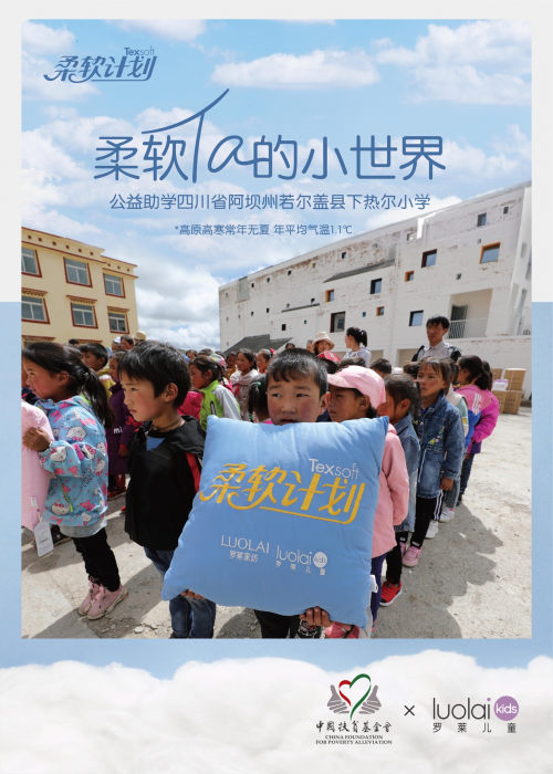 2019年9月1日,羅萊生活科技股份有限公司(簡稱“羅萊生活”)聯(lián)合中國扶貧基金會,為處于川藏高寒地區(qū)的若爾蓋縣阿西鄉(xiāng)下熱爾村小學校舍送上了一份開學大禮:捐贈了價值40萬人民幣的羅萊兒童超柔床品,改善全校學生的就寢環(huán)境,通過TEXSOFT超柔新科技為孩子們助力溫暖。