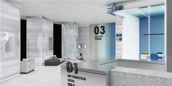 洽談區(qū):展廳第二站為三維洽談區(qū),洽談區(qū)內(nèi),特殊展柜設(shè)計不僅吸睛,更因獨(dú)特設(shè)計形式,使得整個空間形成時尚有趣的隔間,客戶在這休息洽談的同時,也能一覽展廳各處的設(shè)計亮點。