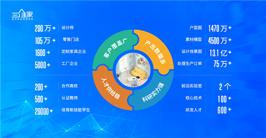 三維家作為以家居產(chǎn)業(yè)為依托,依靠云計算、大數(shù)據(jù)和AI人工智能等多項核心技術(shù)打造的家居工業(yè)互聯(lián)網(wǎng)平臺,日產(chǎn)設(shè)計方案超100萬張,渲染方案圖總量13.1億,3D樓盤戶型圖超500萬,家居產(chǎn)品素材/模型超4500萬,現(xiàn)已成為中國家裝產(chǎn)業(yè)大數(shù)據(jù)中心之一。